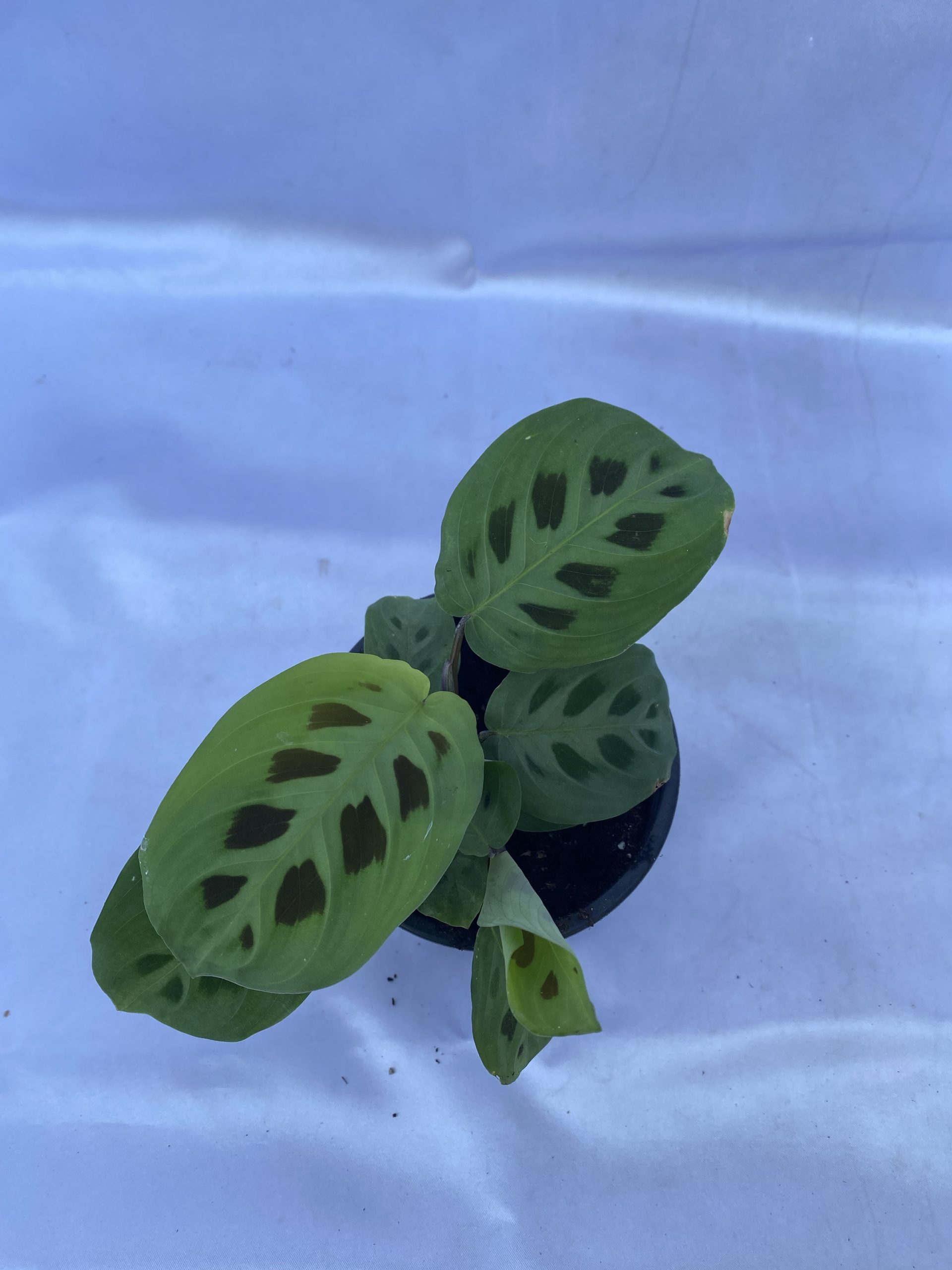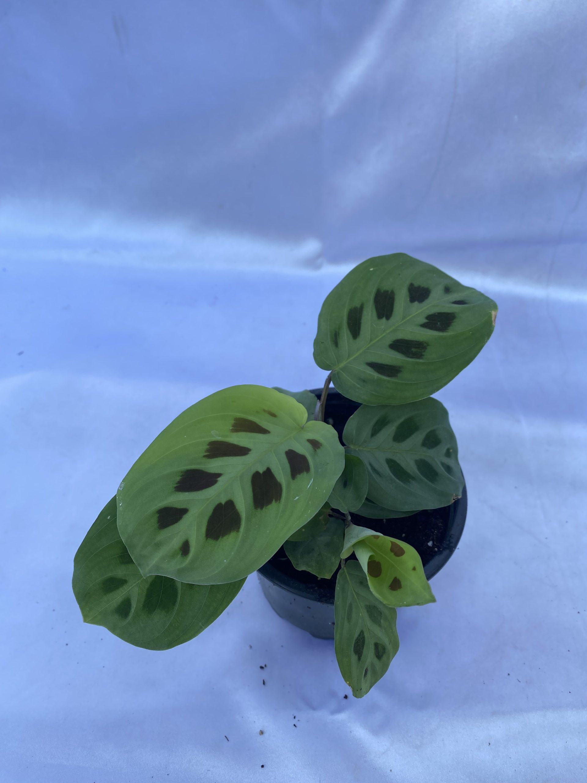 Su nombre científico es Maranta leuconeura ‘Kerchoveana’. Se le llama «Planta de la Oración» porque sus hojas se pliegan hacia arriba por la noche, como si estuvieran en posición de oración, y se abren durante el día.