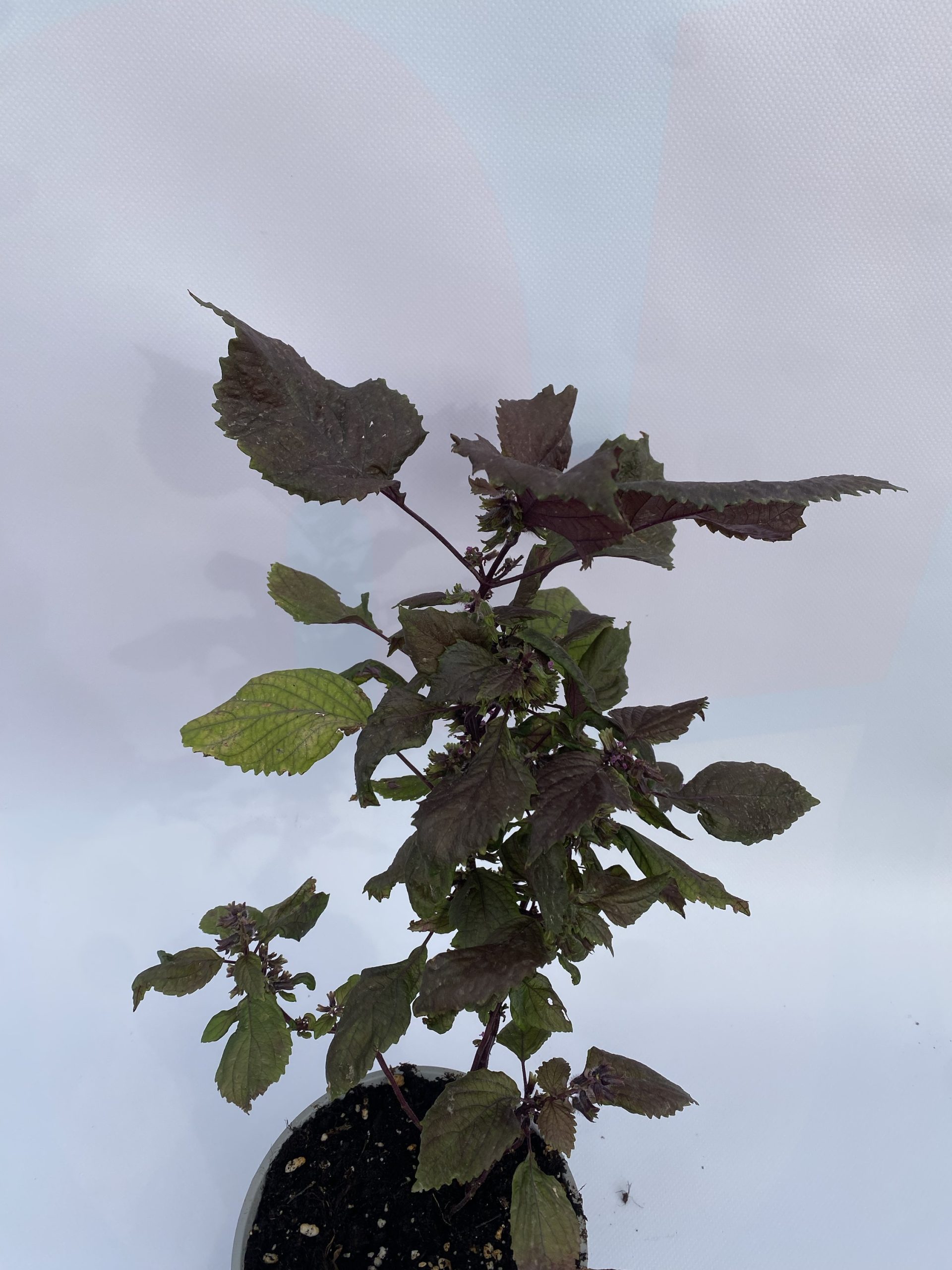 El shiso rojo, también llamado perilla roja o akajiso, es una hierba aromática de origen asiático con hojas de color rojo o morado intenso que se utiliza tanto en la cocina como en la medicina tradicional.